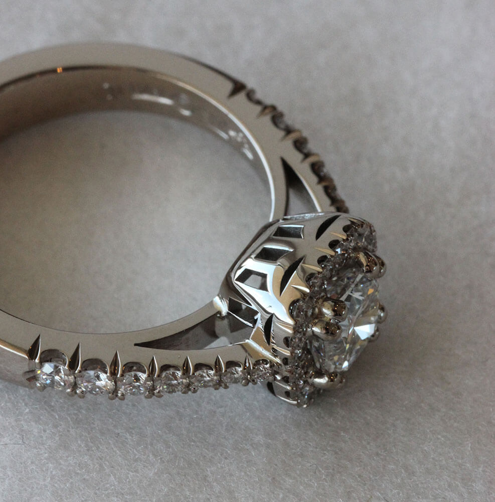 Jag arbetar i CAD och detta ger mig möjlighet att visa er fotorealistiska skisser innan era förlovningsringar är tillverkade.