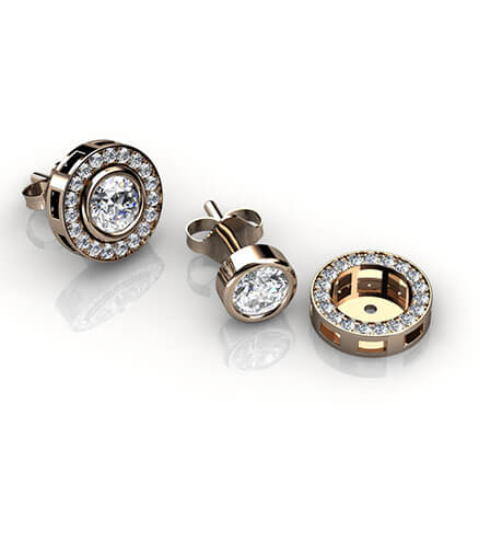 Dessa två modeller är olika varianter av örhängen i halomodell där vi har satt en morganiter som mittsten och diamanter runt om. Detta ger ett både elegant och maffigt intryck och den rosa färgen framhävs av de vita briljantslipade diamanterna.